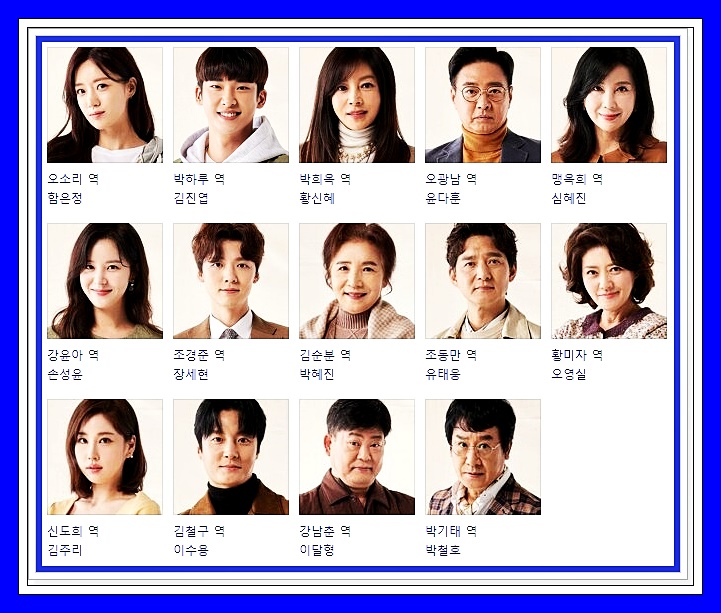 그럼 마지막으로 사랑의 꽈배기 등장인물에 대해 간단하게 소개하겠습니다. 배우들 이름과 드라마에서의 역할 정도만 가볍게 설명할 예정이니 참고 부탁드립니다.