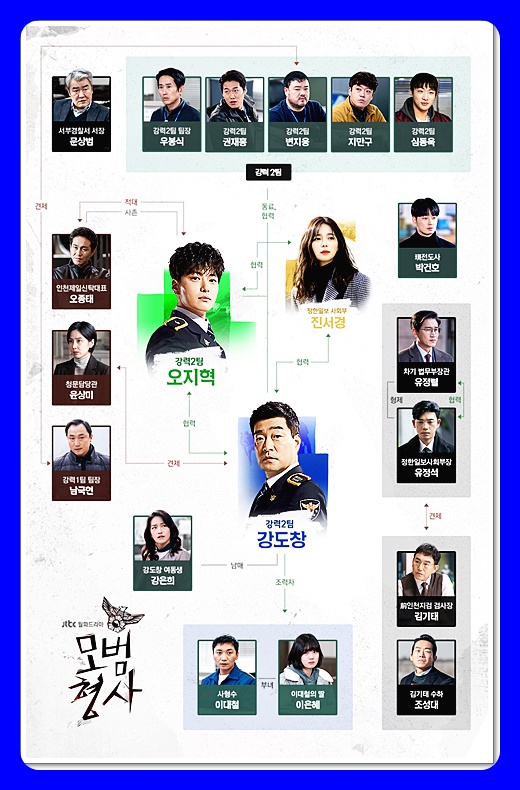 이쯤 해서 모범형사 시즌1 등장인물도 알아봅시다. 자세한 인물관계도는 아래를 참고하시고요.