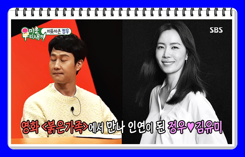 아는 분은 다 아시겠지만, 정우 와이프 역시 연기자입니다. 바로 배우 김유미 님인데요. 최근에 작품활동을 안 해서 인지도가 조금 떨어진 듯한 느낌이지만, 오래 봐 온 분들은 다들 아시는 배우이기도 하죠.